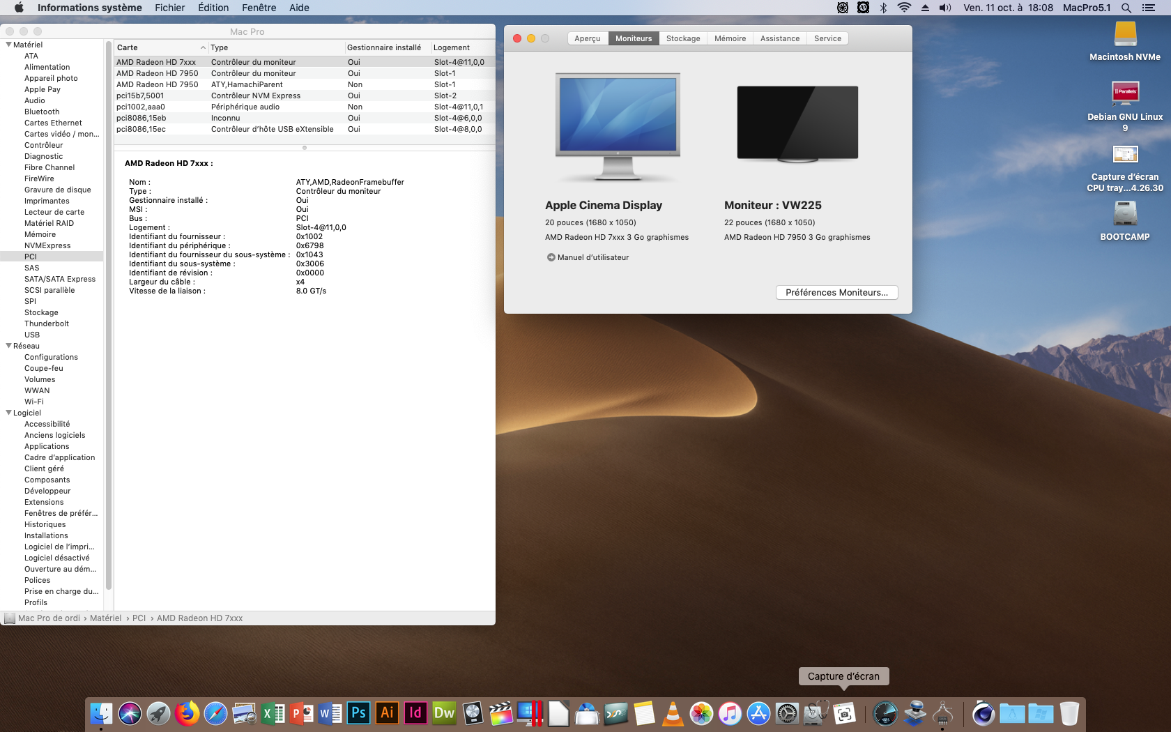 – l’impossibilité de mettre le Mac en veille, car dans un tel cas, la sorte de veille se traduit par un reboot qui cette fois ne reconnaît pas la carte (il faudra donc d’abord booter sur Windows 10 pour réamorcer la carte.