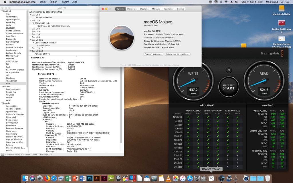 Les MacPro ont encore gagné quelques années de vie grâce à la possibilité d’y installer une carte PCIe Gigabyte Titan Ridge (attention, car sa sœur, l’Alpine Ridge n’est pas reconnue par la méthode ci-dessous) qui dispose de deux ports USB-C Thunderbolt 3.