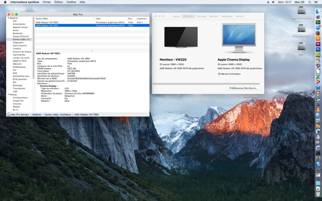 Deux conclusions s’imposent. Tout d’abord ces MacPro sont de belles machines inusables et ensuite, on se demande bien pourquoi Apple qui utilise aussi l’Intel DSL7540 Thunderbolt qui anime cette carte ne permet pas sa reconnaissance en fournissant un driver.